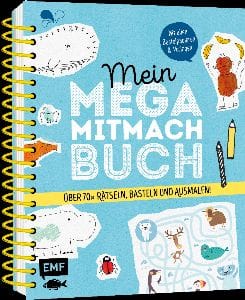 „Mein Mega Mitmach Buch“ ist ein super tolles Kreativbuch für Kinder in Spiralbindung. Kinder werden dieses Buch lieben, weil es voller kreativer Ideen steckt. Egal ob Kinder rätseln wollen oder basteln, alles finden sie kompakt in diesem Buch. Auch kleinere Kinder können schon mitmachen, denn es gibt auch wunderschön gestaltete Vorlagen zum Ausmalen.