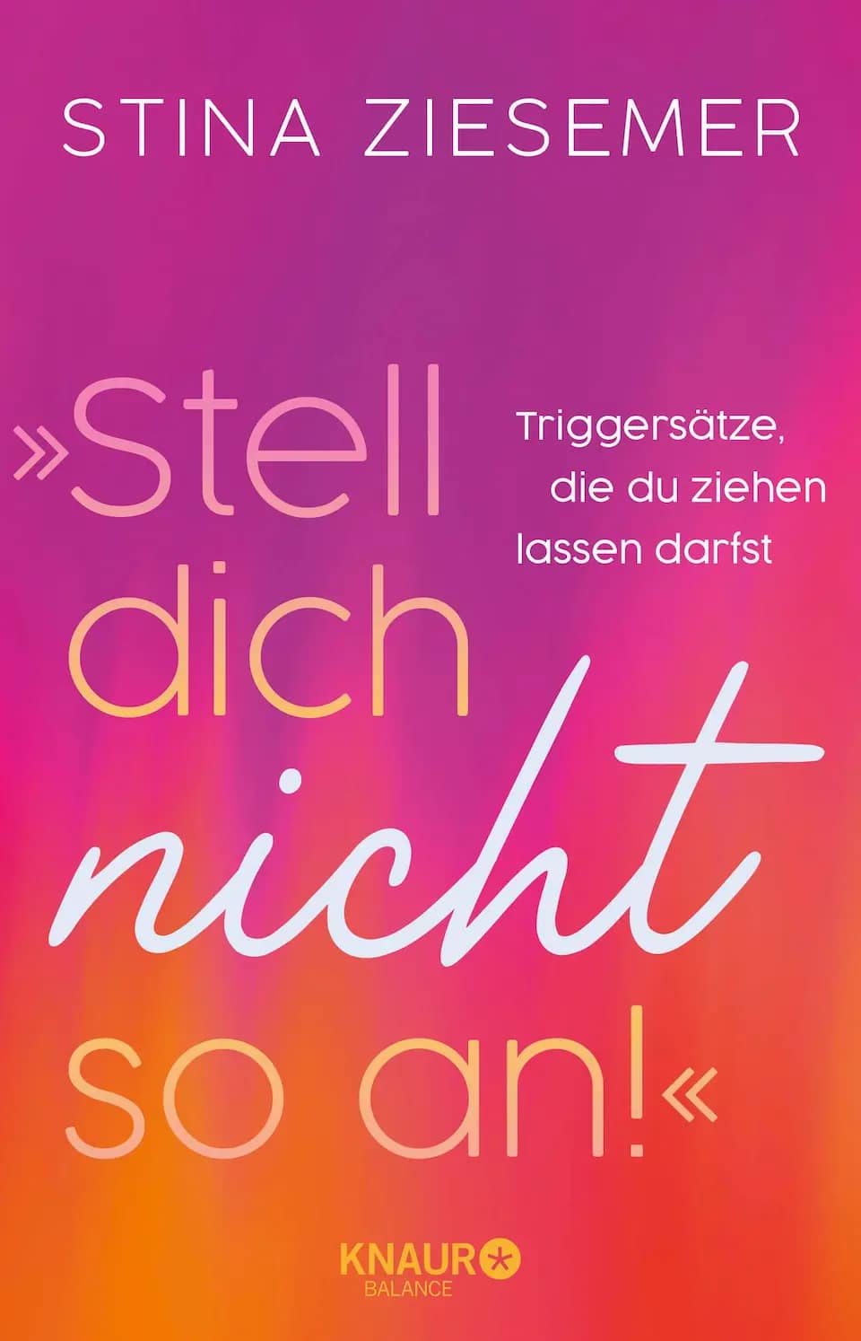 „Stell dich nicht so an!“ ist ein wunderbarer Selbsthilferatgeber, der eine Einladung ist, negative Glaubenssätze, die zu Triggern geworden sind, sanft zu hinterfragen und sie dann beiseite zu legen und das zu denken und zu tun, was wirklich für Sie selbst gut und richtig ist. Ein echter Herzensöffner!